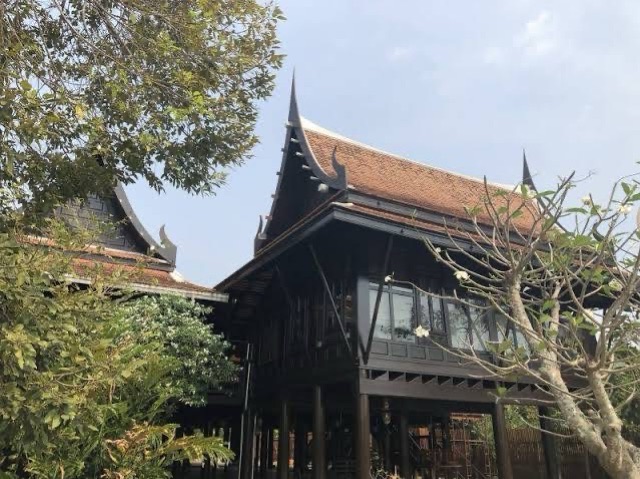 ้าเรืไทหลัา ตั้ตระห่าู่ตรห้าชาหุ่ รข้าเต็ไป้ต้ไ้ และไ้าาพัธ์ โชลิ่หให้รู้สึผ่คลา ้าซ้าืีศาลาที่เทีริแ่้ำ ูสะาสาตา ลิ่าขธรรชาติ ทำให้เขารู้สึเหื้ลัไปใีตที่ผ่าา