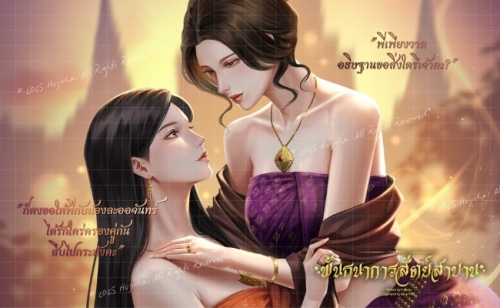 ลิ่ะลิหลทั่เรืไทหลัา ่ารัใช้ต่าั่ล้ัเตรีุปรณ์สำหรัร้าลัให้าหญิ เสีหัเราะคิคัและเสีระซิระซาัแ่ิรู้ขา ท่าสิ่ที่สะุตาที่สุคืสุลสตรีาัแรรุ่ซึ่ั่พัเพีู่ตั่ ท่ท่าขพาทั้สส่าาราภาพาโราณที่ีชีิต