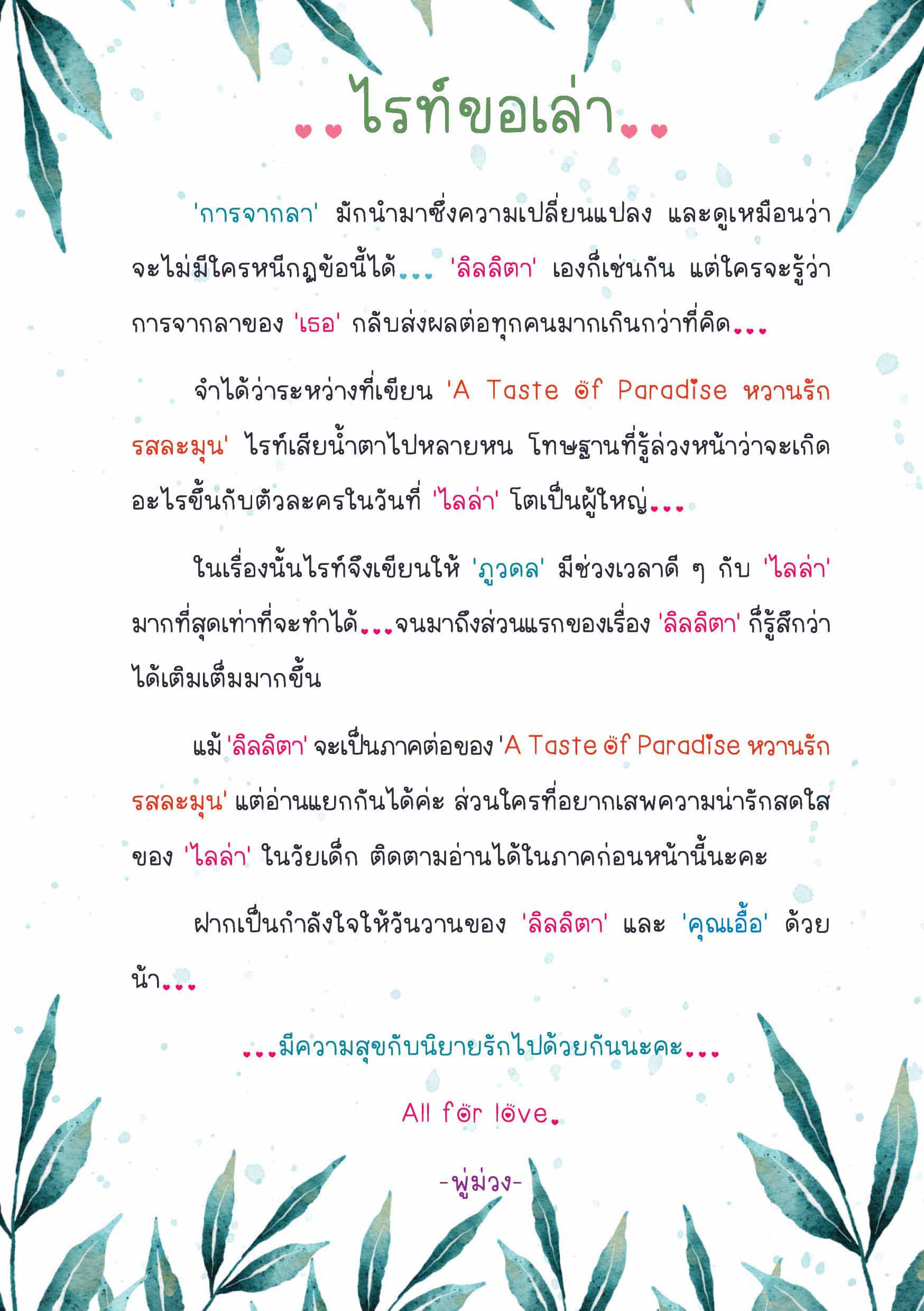 เล่าเรื่องความรัก...ผ่าน 'นิยายรัก' ... ฝากนิยายทั้ง 2 ซีรี่ส์ของ พู่ม่วง ด้วยนะคะ