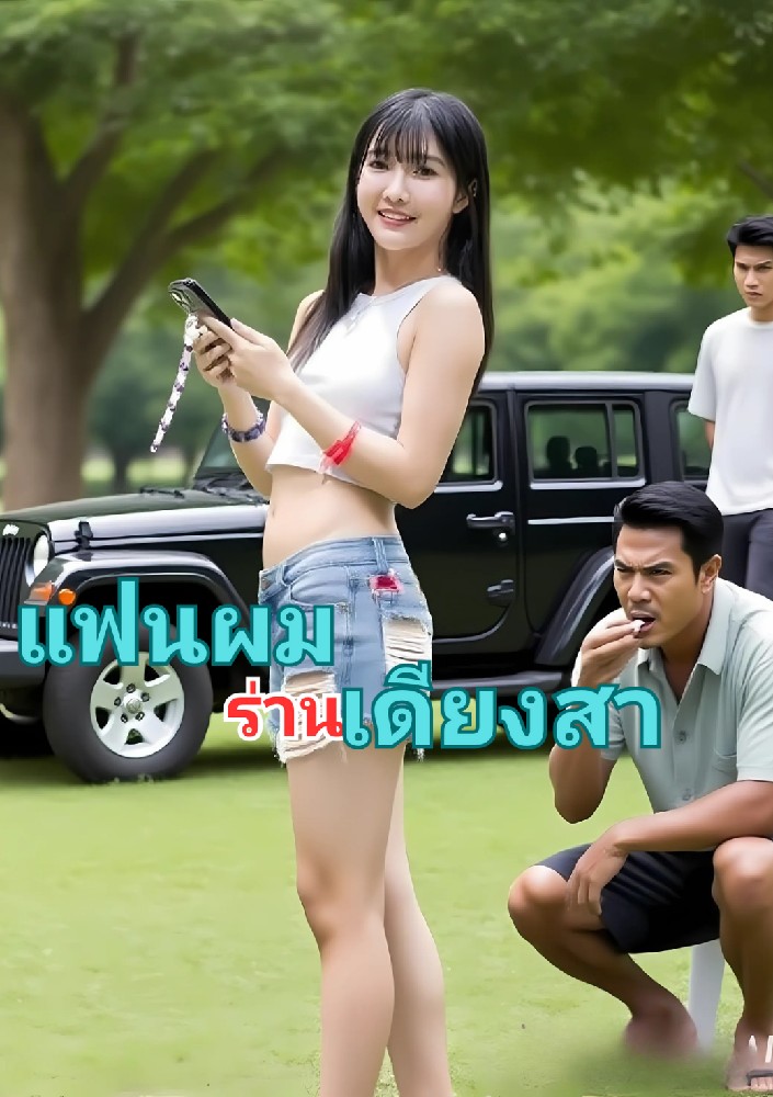 ยังไม่ทันที่ผมจะได้สงสัยอะไรมากไปกว่านี้ ขาเรียวเล็กขาวผ่องคู่หนึ่งก็เหยียดออกมาจากหน้าต่างรถที่เปิดอยู่ครึ่งหนึ่ง เท้าเล็กๆ จิกเกร็ง ปลายเท้าแกว่งขึ้นลงเบาๆ ตามแรงสั่นของรถ แม้จะไม่ต้องมองเข้าไปในรถก็เดาได้ว่ามิวคงนอนแยกขาขาวผ่องอยู่เบาะหลัง และน้าชาญคงกำลังสอดใส่ท่อนเนื้อขนาดใหญ่เข้าออกในร่องสวาทของมิวซ้ำแล้วซ้ำเล่า ผมเข้าใจแล้วว่าทำไมรองเท้าแตะของมิวถึงตกอยู่ข้างล้อหลัง คงเป็นเพราะตอนที่น้าชาญกระเด้า ขาของมิวที่กระตุกด้วยความเสียวจึงได้สะบัดจนรองเท้าหลุดไป
