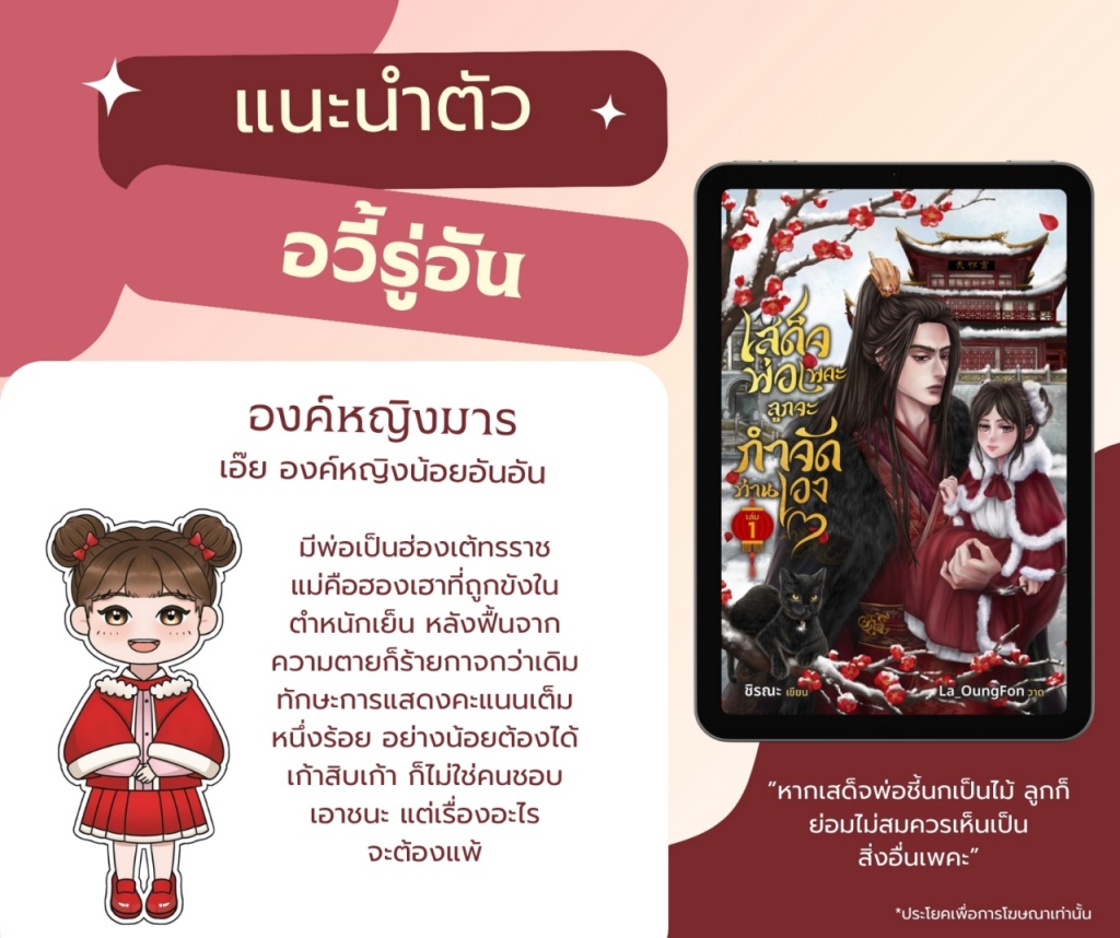 “ในเมื่อเจ้าเองก็เห็นด้วยว่าเสด็จแม่ของเจ้าไร้ค่า คราวนี้ก็ถึงตาของเจ้าแล้ว...” อวี้จินไห่สบกับดวงตากลมใสของบุตรี รู้สึกประหนึ่งเห็นนัยน์ตาดุจผลซิ่งหวานซึ้งของใครบางคนสะท้อนกลับมา “จงพิสูจน์เสียว่าเจ้าหาได้เป็นขยะเช่นนาง”