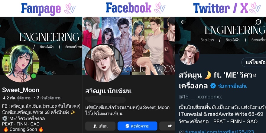 ช่องทางการติดตาม เพื่อไม่ให้พลาดนิยายของไรต์นะคะ ไปกดตามกัน!