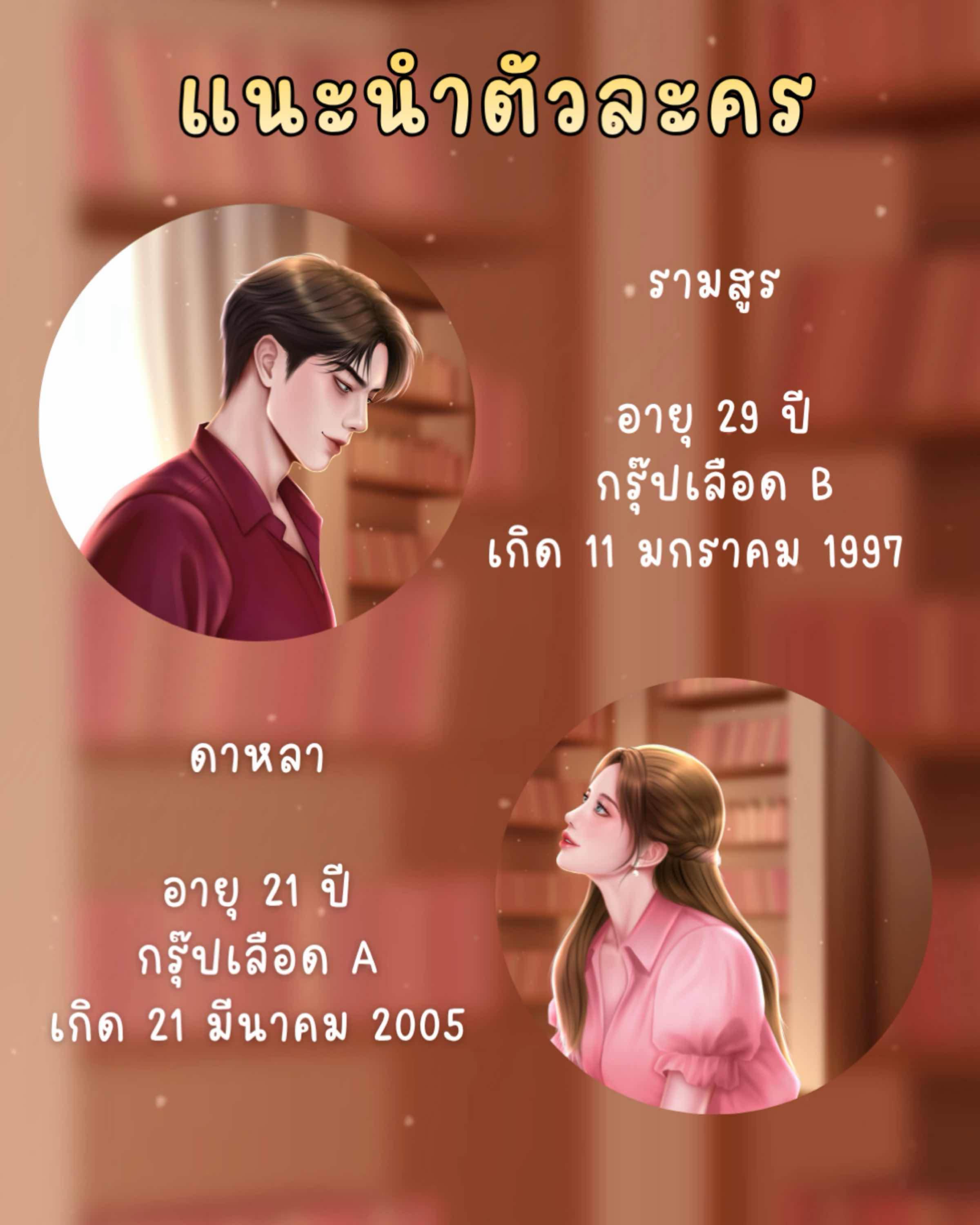 รามสูร —> ผู้บริหารหนุ่มบริษัทรับเหมาก่อสร้างยักษ์ใหญ่ระดับต้นของประเทศ เขามีลุคมาดขรึมและครองโสดจนถึงวัยใกล้ 30 ปี ด้วยความรักสันโดษทำให้เขาไม่คิดมองผู้หญิงคนไหนเลย แม้จะอยู่ในกลุ่มเพื่อนที่เปรียบเสมือนหนุ่มเสือร้าย (🐯)