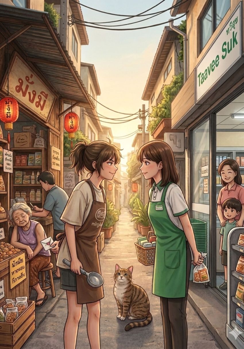 ทว่าโลกของม่านรุ้งต้องสั่นคลอน เมื่อร้านทวีสุขฝั่งตรงข้ามตัดสินใจรีโนเวทครั้งใหญ่